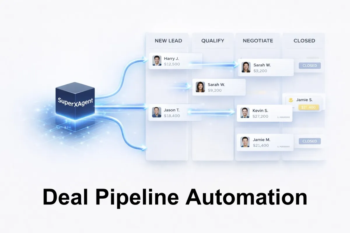 No, better. It’s the execution layer that runs on top of your sales process. CRMs store info. SuperXAgent moves deals forward: capture → follow-up → pipeline actions → quotes/offers → contract → close → tracking.